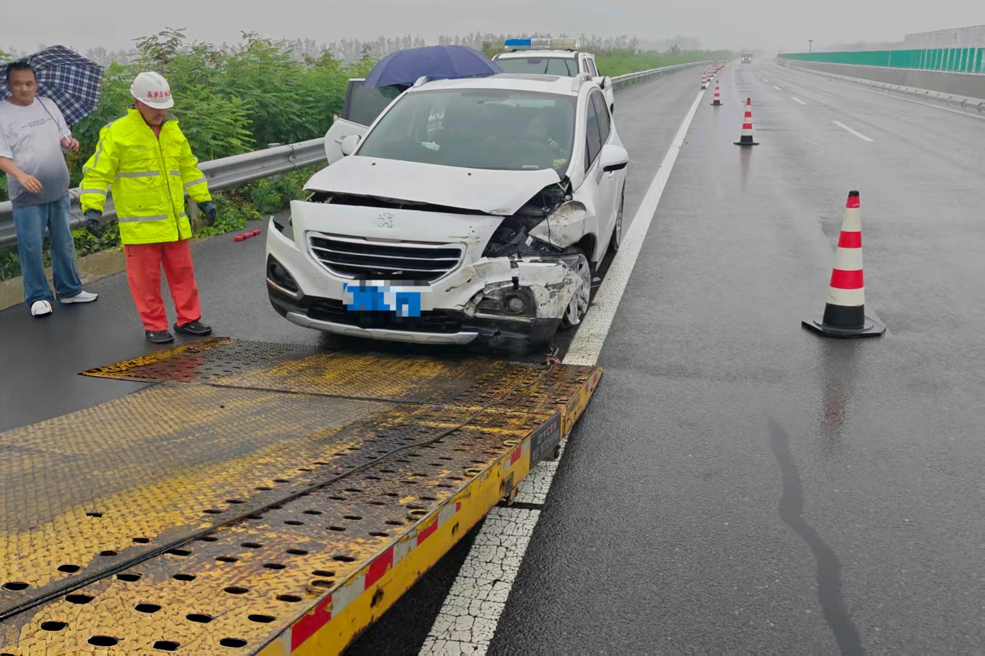 13时许,监控中心人员通过全路段高清监控系统开展“动态巡查”,发现K128+500处一辆7座小客车撞击中央护栏后,停在应急车道内,监控中心即刻通知驻外中队和养护队就近人员赶赴现场,并通过沿线可变情报板发布“前方事故,减速慢行”的实时提示,引导后方车辆提前变道,避免再次发生事故。随后,驻外中队和清障车辆到达现场,快速摆放警示标志、反光锥、划分事故警戒区域,并迅速开展清障行动,未造成拥堵及次生事故。