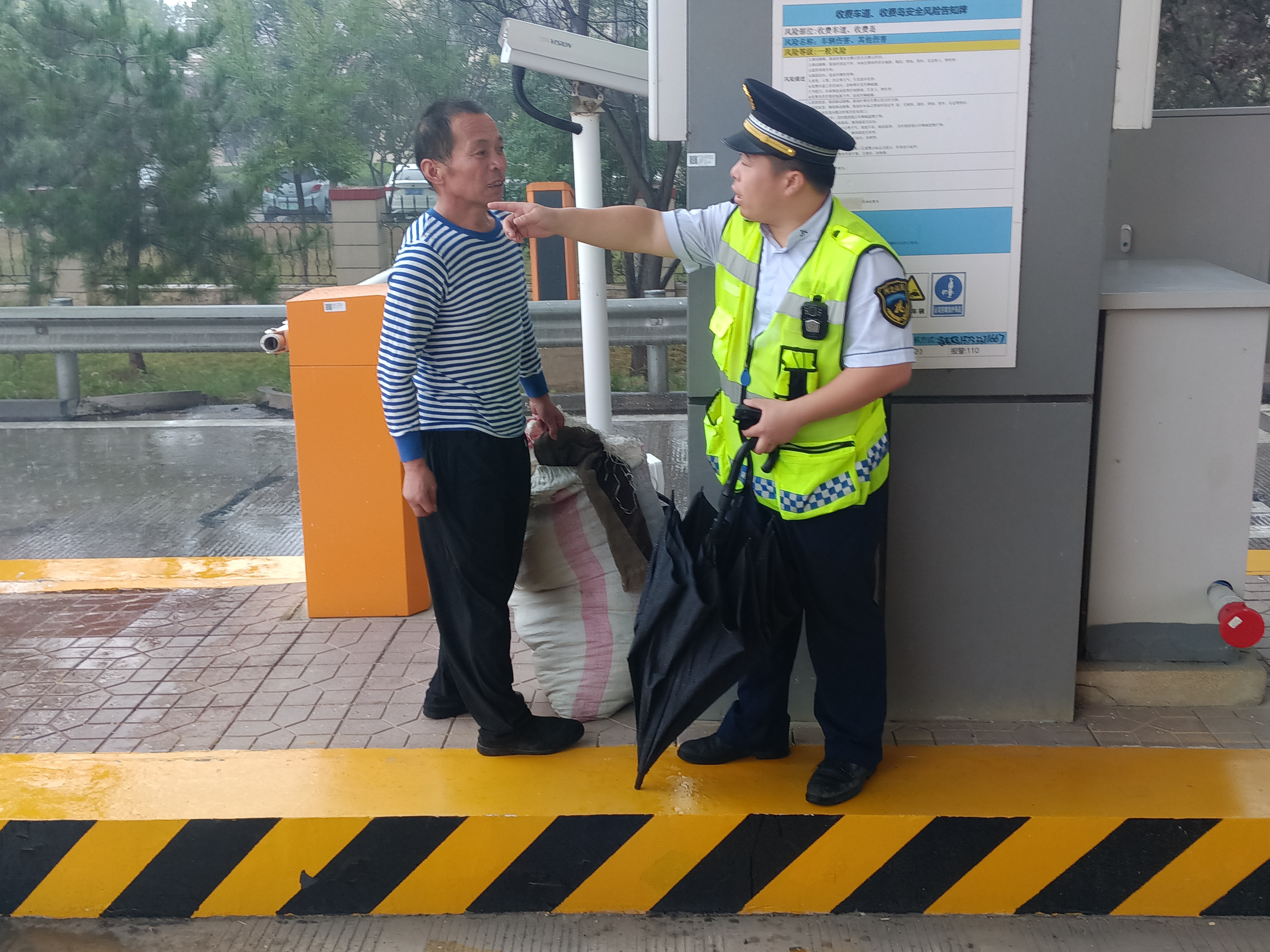 9月16日,一场突如其来的降雨笼罩了冀州南收费站,工作人员像往常一样坚守岗位。这时,一位肩扛大件行李、面露茫然的老人出现在收费站附近,正要冒雨走上高速。收费员见状立即上前阻拦,并呼叫班长前来询问情况。