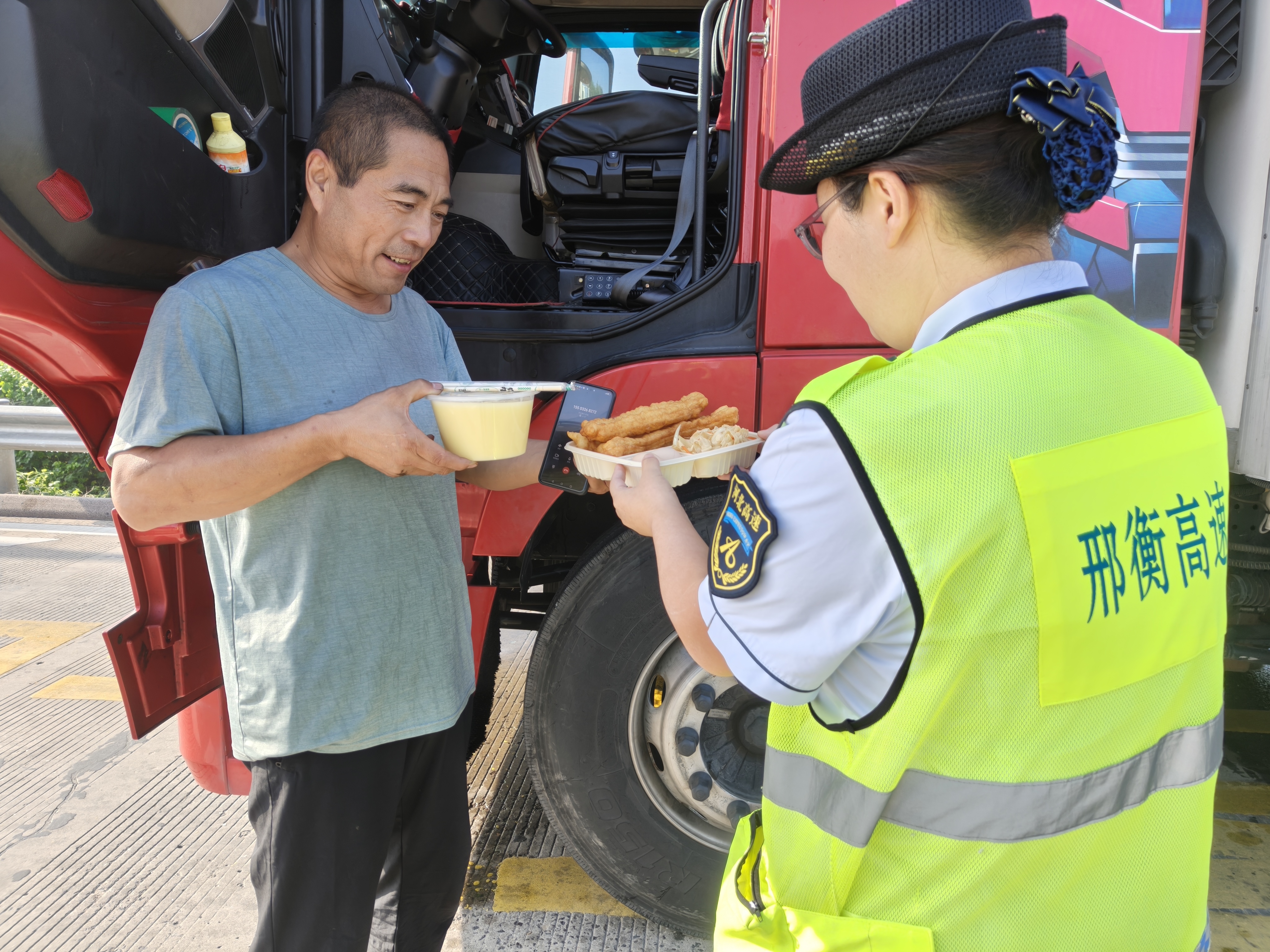“太感谢你们了!车坏了本来就着急,没吃饭浑身没劲儿,你们送来的不仅是热乎饭,更是实实在在的温暖!”9月20日上午,货车司机王师傅握着冀州南收费站收费员的手连声道谢。