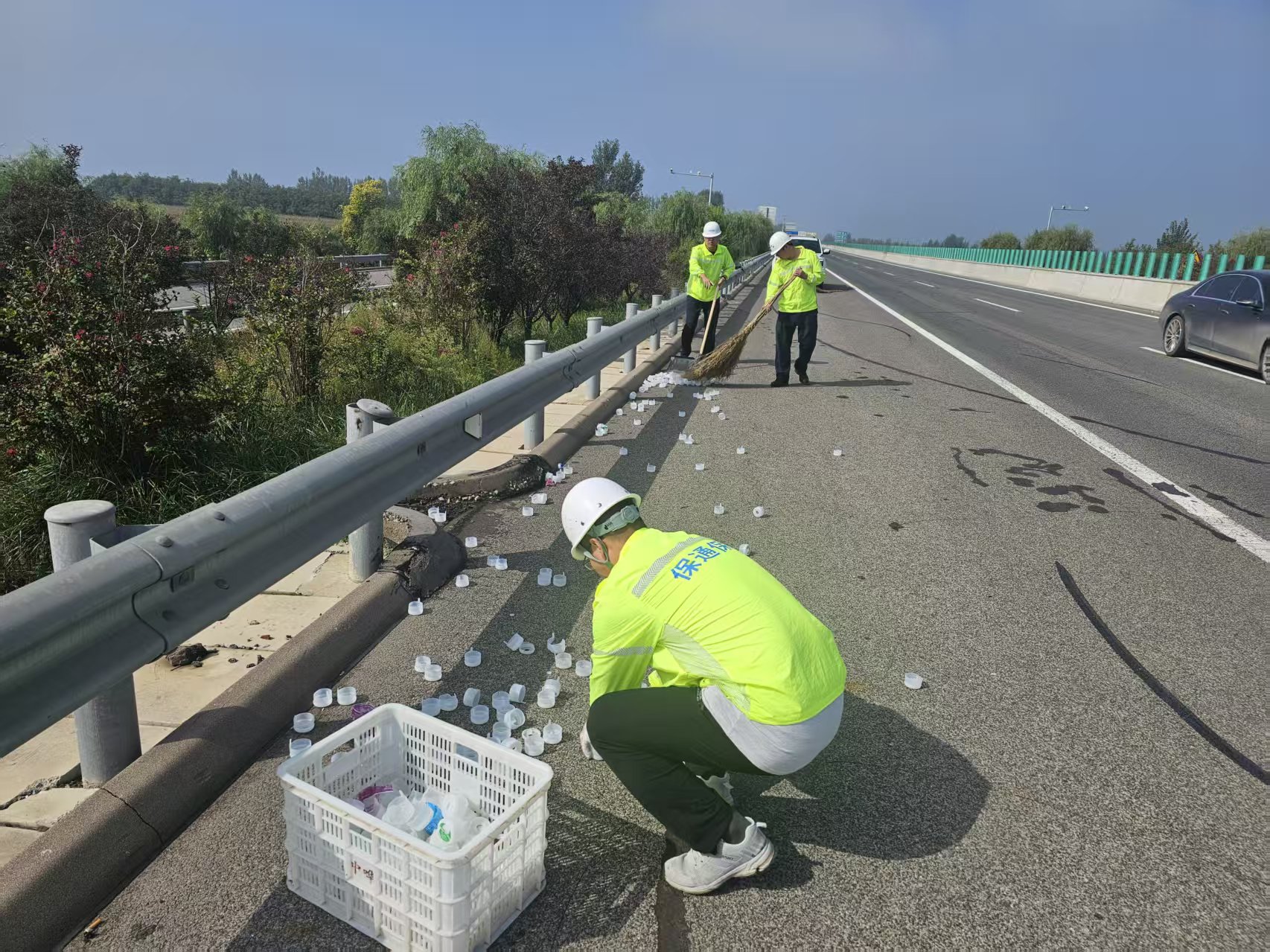 9月25日,庞家村驻外中队队员在日常巡查中,发现衡水方向K164+900处路面散落大量抛洒物,绵延200余米,给过往车辆造成一定安全影响。