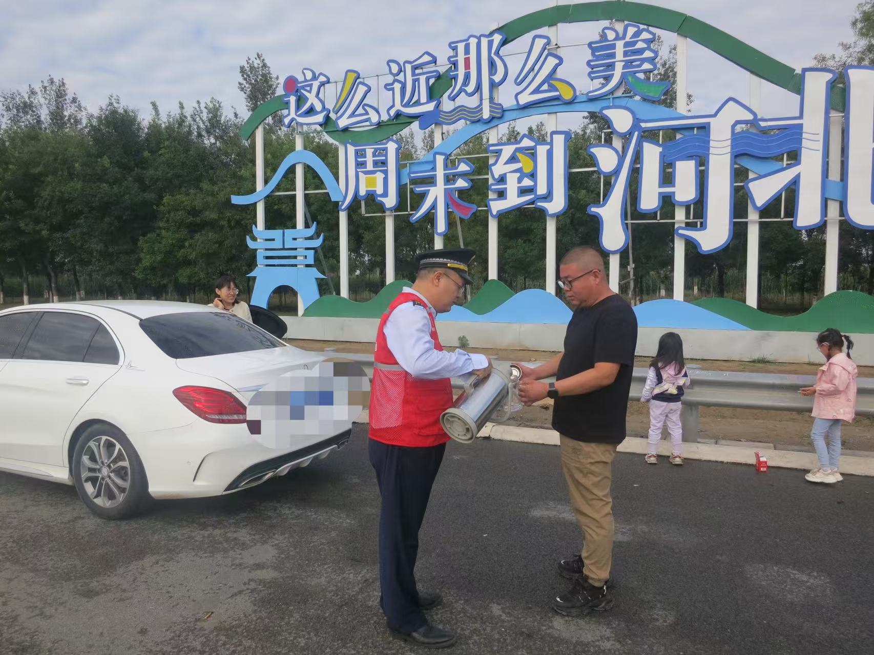 随后班长为司机倒上满满的一杯热水。他还细心的发现司机拿的水杯太小,于是询问:“师傅,您车上还有其他杯子吗?出去玩可以多备些热水。”“好好好,你们的服务太暖心了。”司机握着装满热水的杯子,再三致谢后驶入高速。