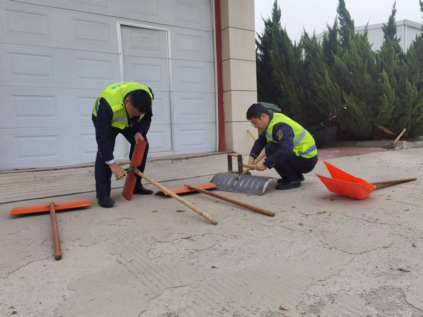 二是深入检查设备状态,做好物资储备。提前检查除雪设备,对站内铁锨、铲雪板、除雪机、扫把等除雪物资进行清点、检查、维护,保证各项除雪设备可正常使用,随时可以投入除雪作业。
