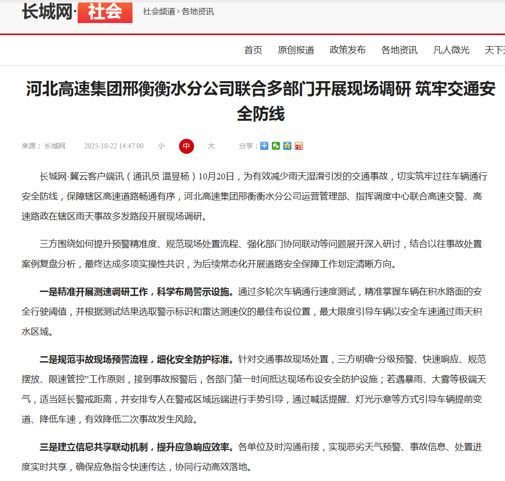 河北高速集团邢衡衡水分公司联合多部门开展现场调研 筑牢交通安全防线