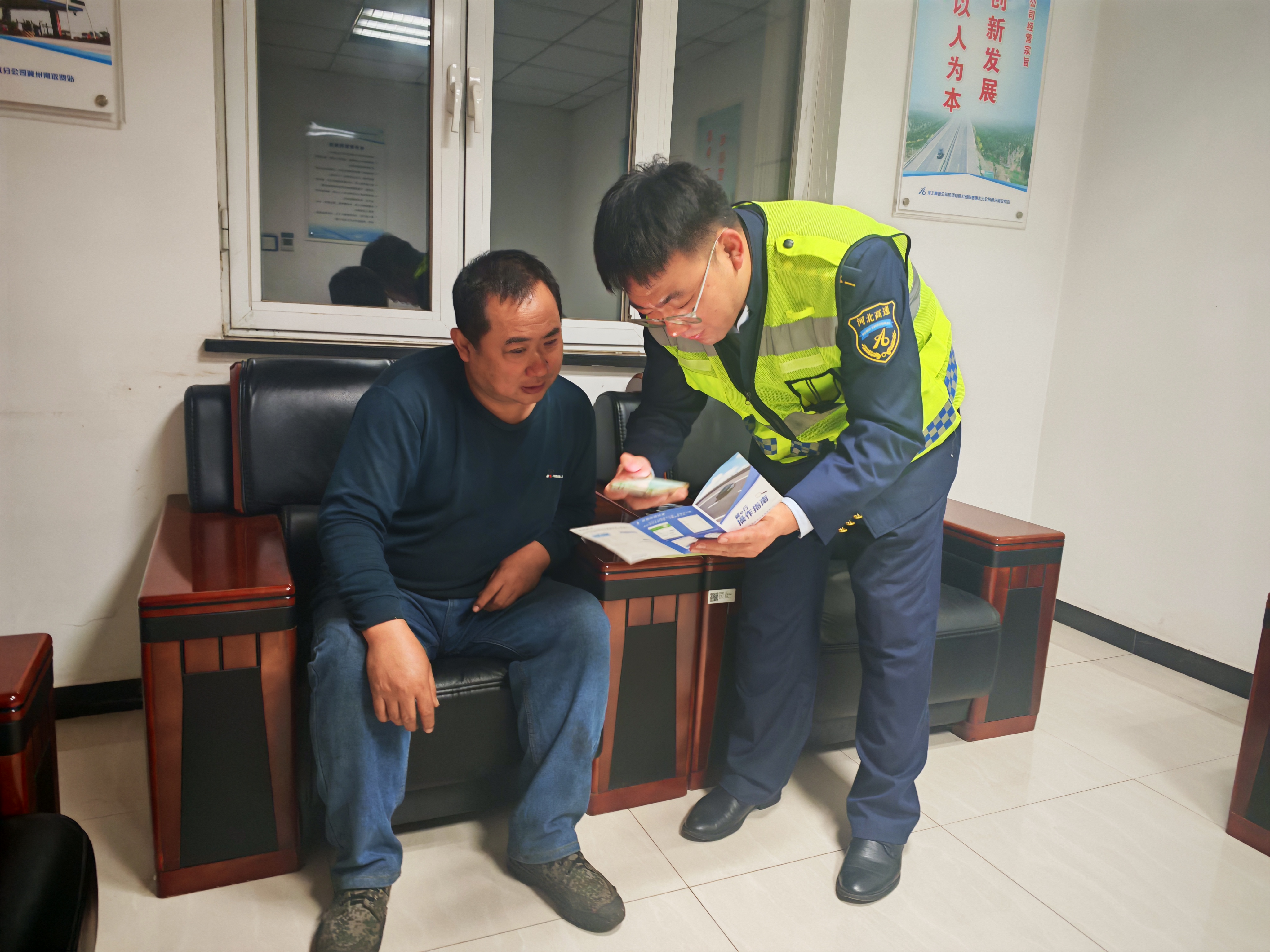 11月1日傍晚7时许,一位货车司机在冀州南收费站缴费后,遇到了一个“新难题”——不熟悉电子发票的开具流程。就在他焦急万分时,收费站工作人员主动上前帮助,以专业和耐心的服务,成功化解了司机的困境,赢得了对方的由衷感谢。