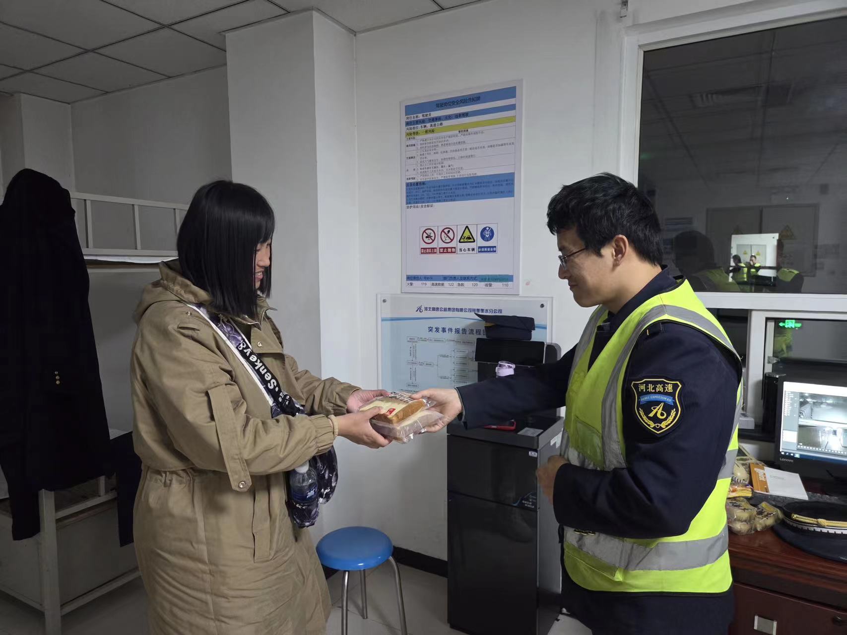 经了解,该女士正等候朋友驾车前来接送。当时气温偏低、寒风袭人,考虑到女士的安全与保暖,班长随即热情邀请她前往站区内值班室休息,并贴心送上热水与面包等物资。面对这份暖心关怀,女士连连称赞:“你们的服务太热情了!太感谢了,可别耽误大家工作!”当班班长耐心回应:“为过往司乘排忧解难,本就是我们应尽的责任与义务!”最终,女士在值班室温暖等候两个小时后,顺利被朋友接走,临行前再次向工作人员表达了诚挚的感谢。