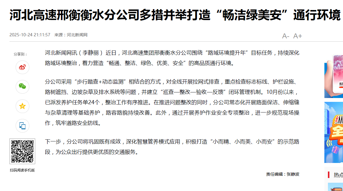 河北高速邢衡衡水分公司多措并举打造“畅洁绿美安”通行环境