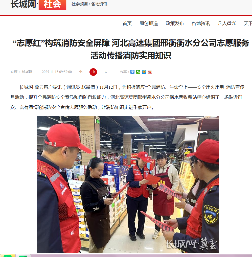 “志愿红”构筑消防安全屏障 河北高速集团邢衡衡水分公司志愿服务活动传播消防实用知识