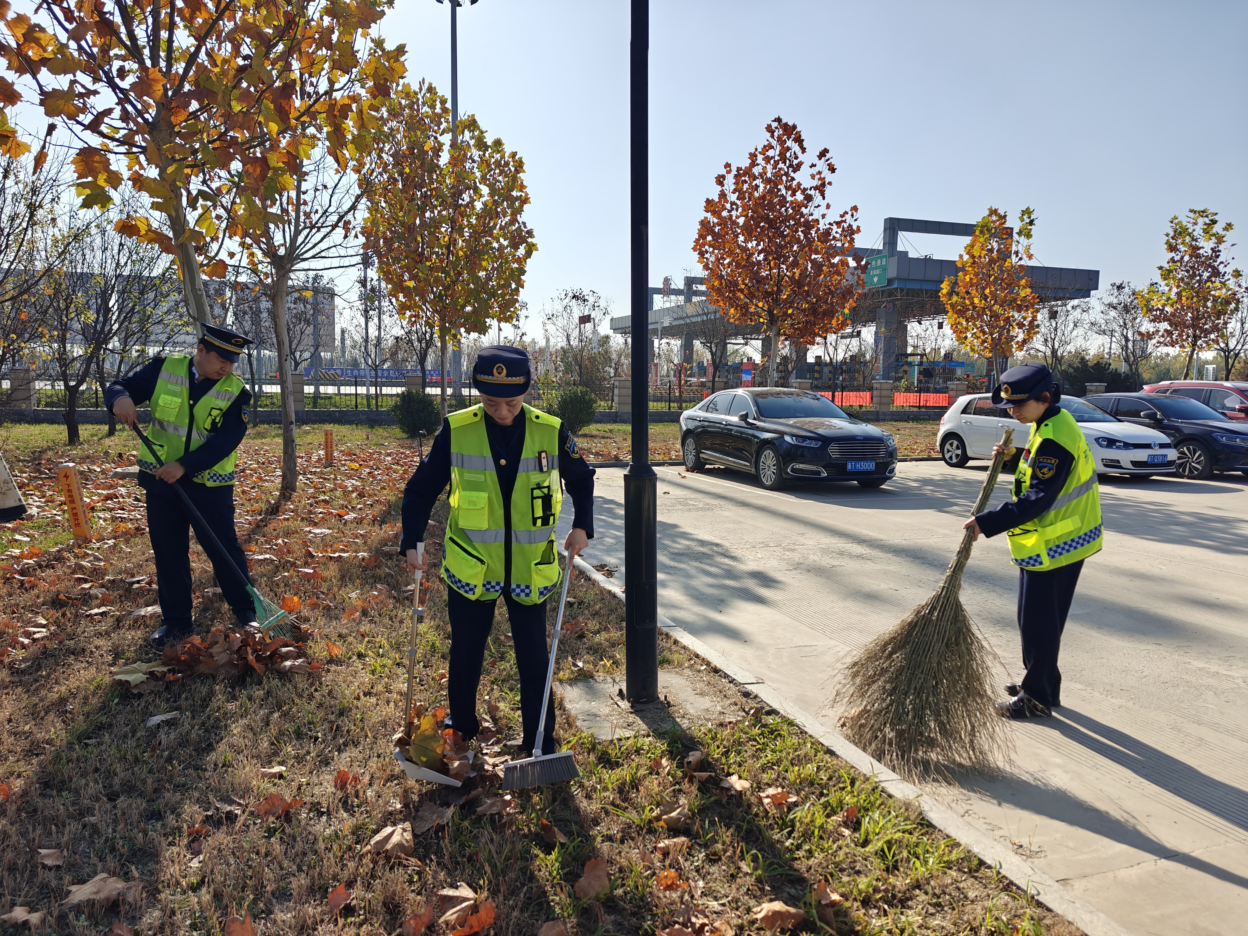 11月13日,为确保收费站安全运营,预防因落叶堆积引发的火灾事故,切实消除安全隐患,衡水北收费站组织开展堆积落叶集中清理行动。