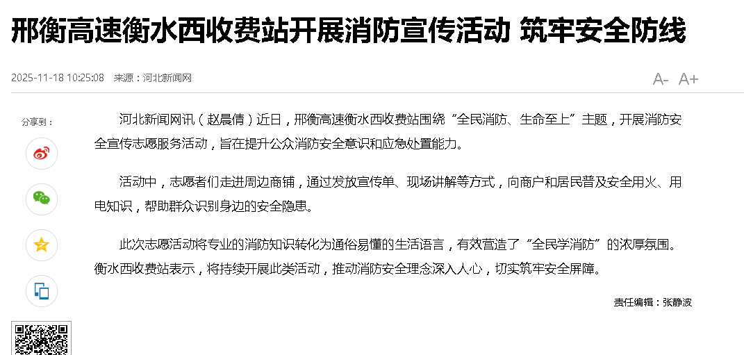 邢衡高速衡水西收费站开展消防宣传活动 筑牢安全防线
