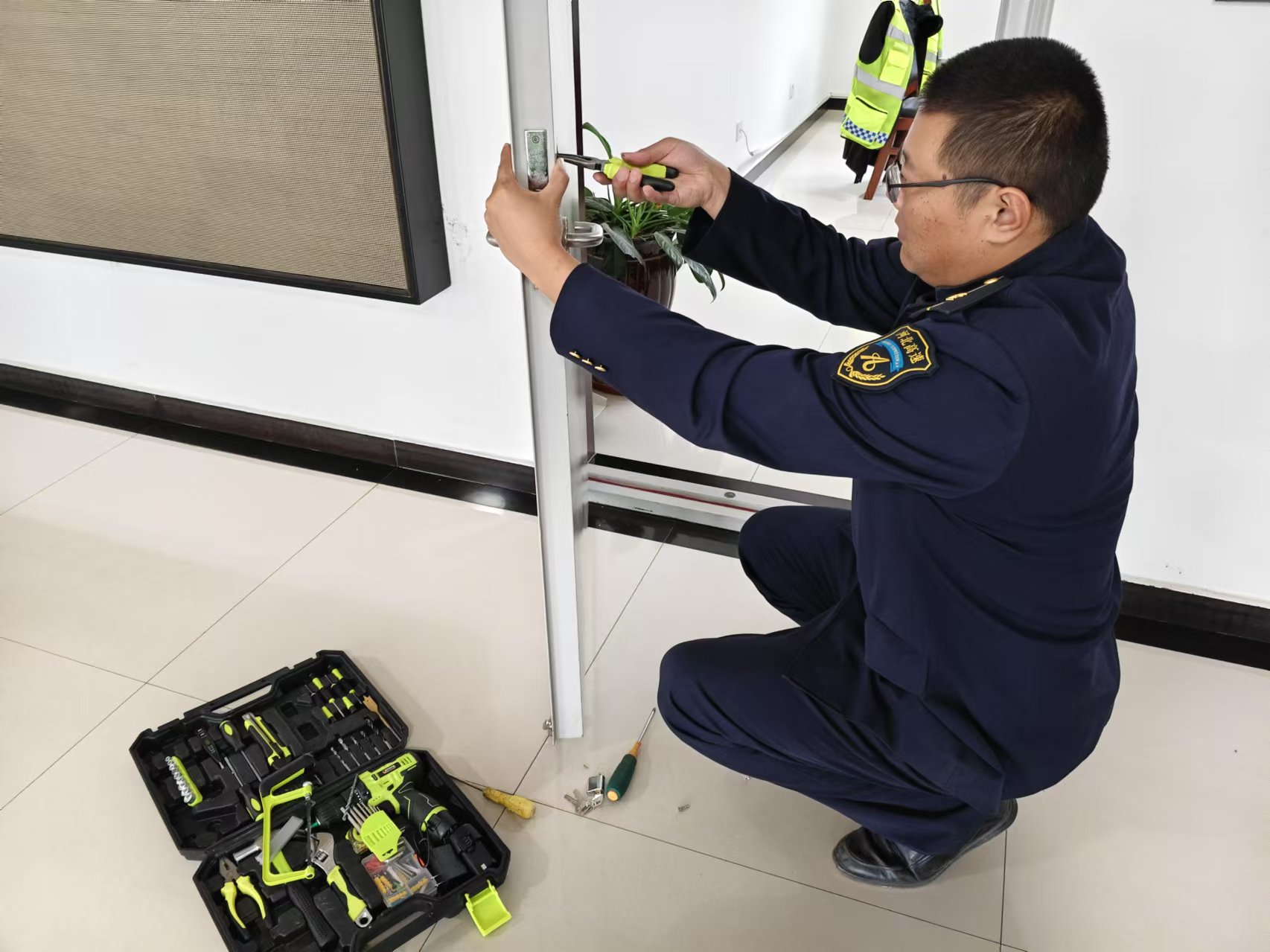 机电人员在日常巡查中发现办公室门锁无法正常锁闭,经过仔细检查发现锁芯损坏,需进行更换。机电人员秉持“配件复用+自主安装”的原则,在拆解旧锁的过程中,筛选可复用的配件并分类存储,为日后续维修提供“备件库”,最大限度降低更换维修成本,做到以“小维修”撬动“大节约”。