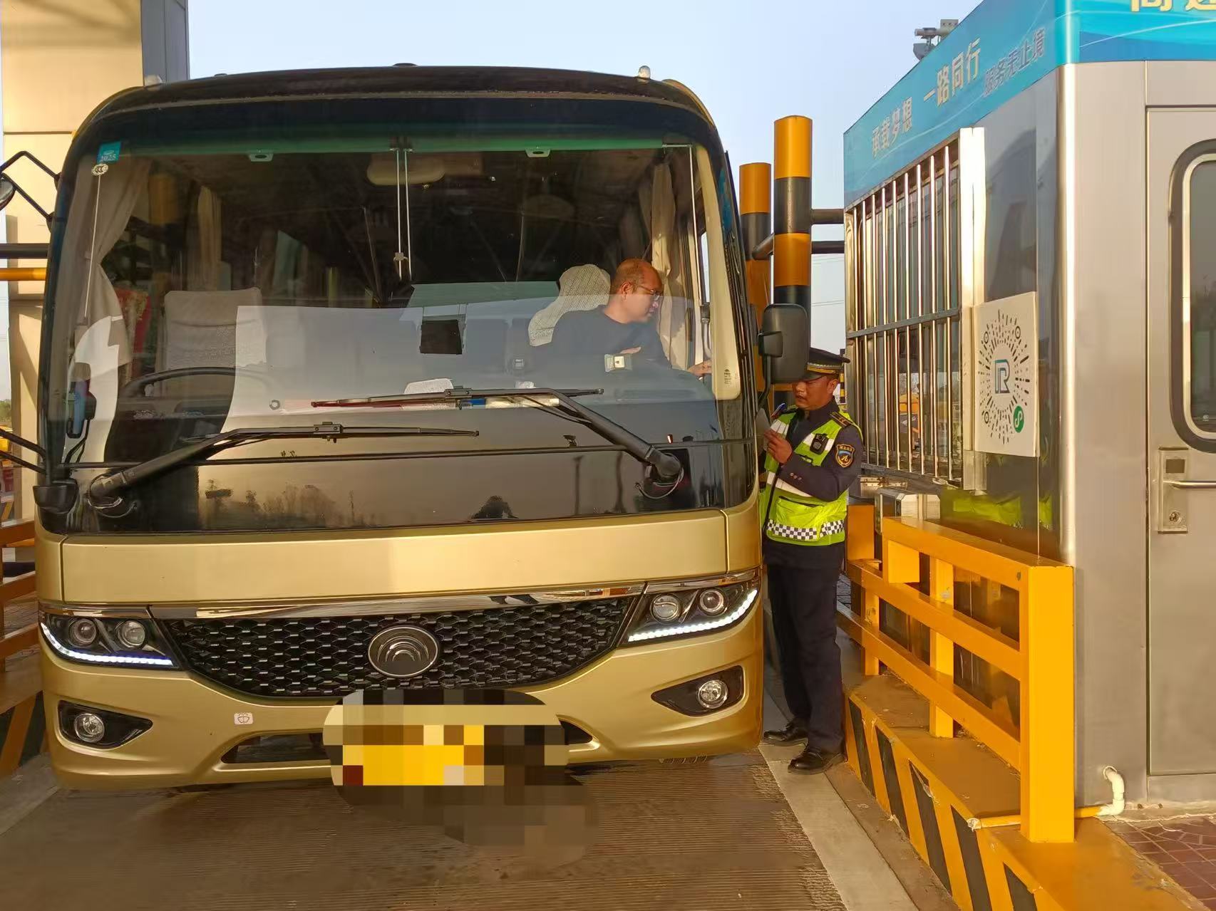 11月23日,为切实做好节假日旅游包车免费工作,提升站口通行效率,确保站口安全畅通,冀州西收费站多举措加强旅游包车查验工作。