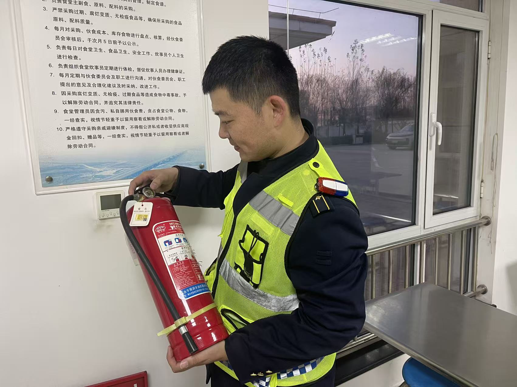 二是检查灭火器压力值是否达标、灭火毯是否完好、消防栓水压是否正常、烟雾报警器是否灵敏、疏散标识是否清晰,发现问题立即整改,确保消防实施“随时能用、用时有效”。