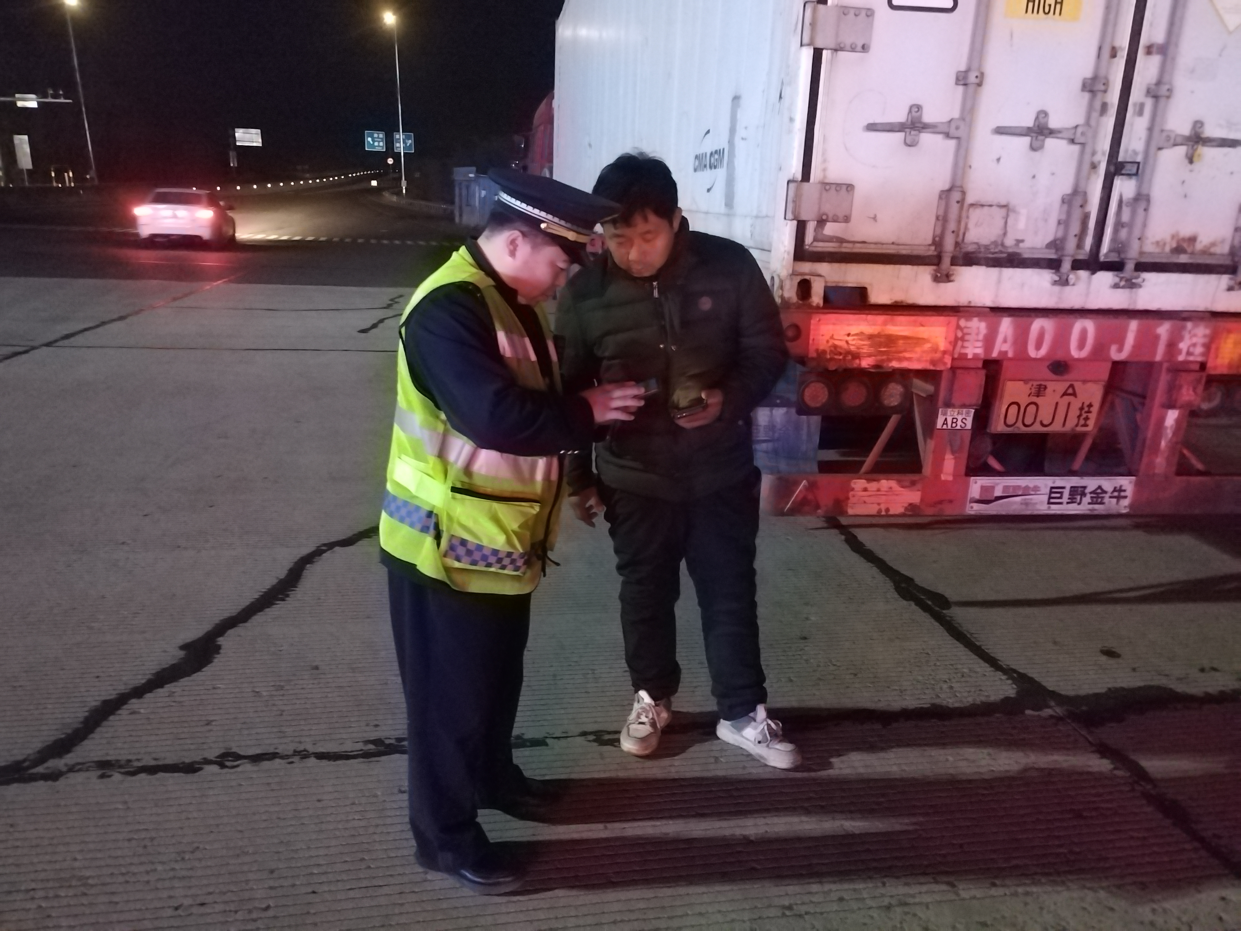 11月28日晚上八点左右,一辆车牌号为津C*****的六轴货车驶入冀州南收费站104车道。司机询问道:“我这显示黑名单,是怎么回事啊?你们这能处理吗?”收费员在正常进行收费操作时,系统提示该车为“恶意大车小标”,便立即通知班长前来处理。