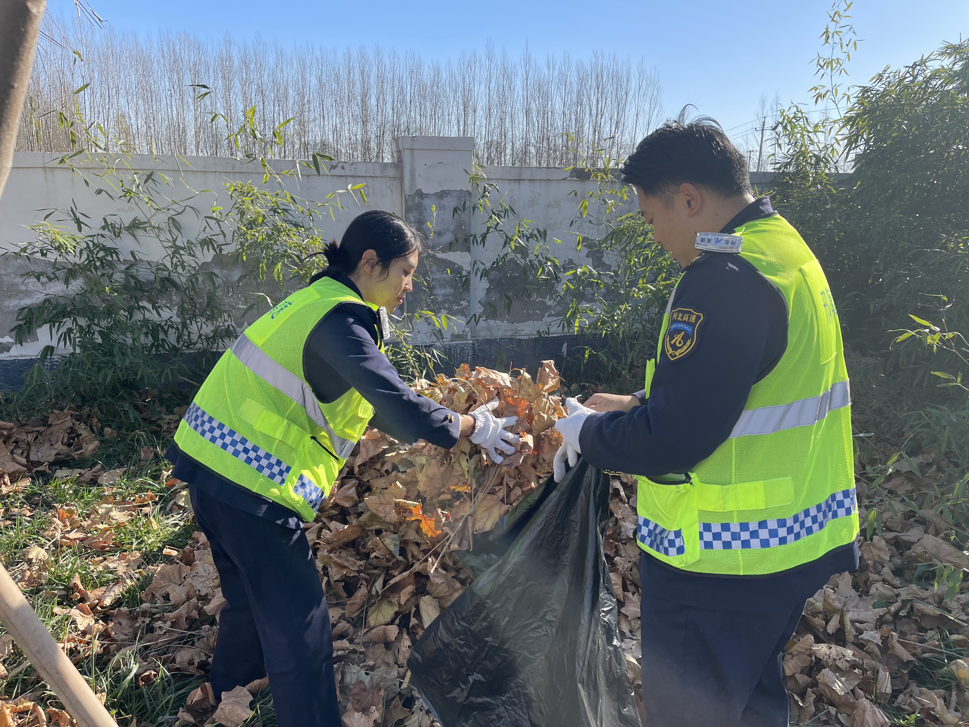 衡水西收费站清理落叶除隐患,美化环境靓形象