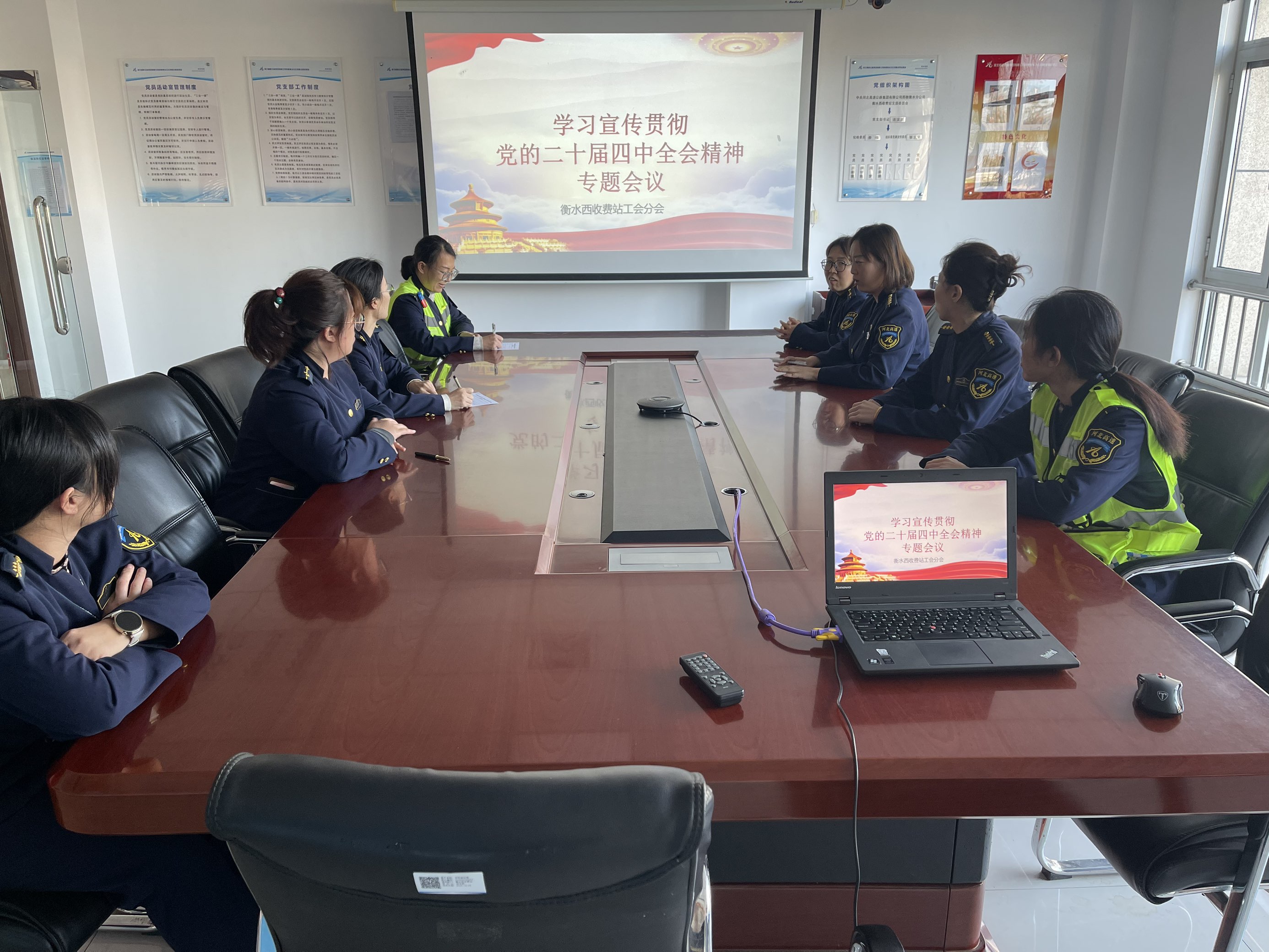 12月4日,为深入学习宣传贯彻党的二十届四中全会精神,切实把女职工思想和行动统一到党中央决策部署上来,衡水西收费站工会分会以“巾帼心向党·奋进新征程”为主题,组织全体女职工开展专题学习活动,推动全会精神在收费一线落地生根、开花结果。