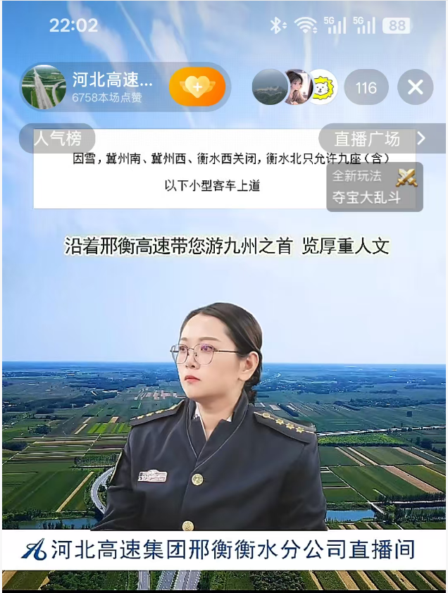 12月12日,河北省迎来大范围降雪天气,为精准服务司乘、及时传递路况信息,邢衡衡水分公司直播间提前开启全时段路况直播,为万千司乘筑牢出行安全防线。