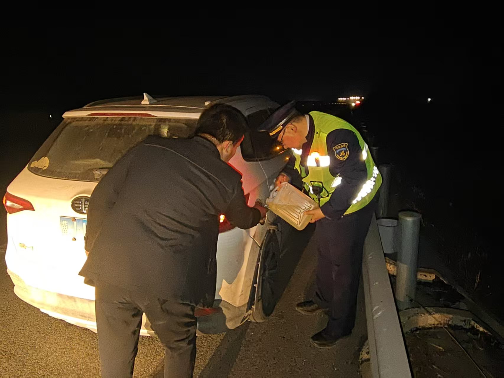 12月21日19时许,一名男子匆匆赶到冀州南收费站入口,值班人员见状立刻上前询问情况。经了解,该男子是一名客车司机,其驾驶的车辆因油料耗尽,在高速上抛锚。他先是搭乘过路车辆前往加油站购买汽油,随后步行返回收费站寻求帮助。
