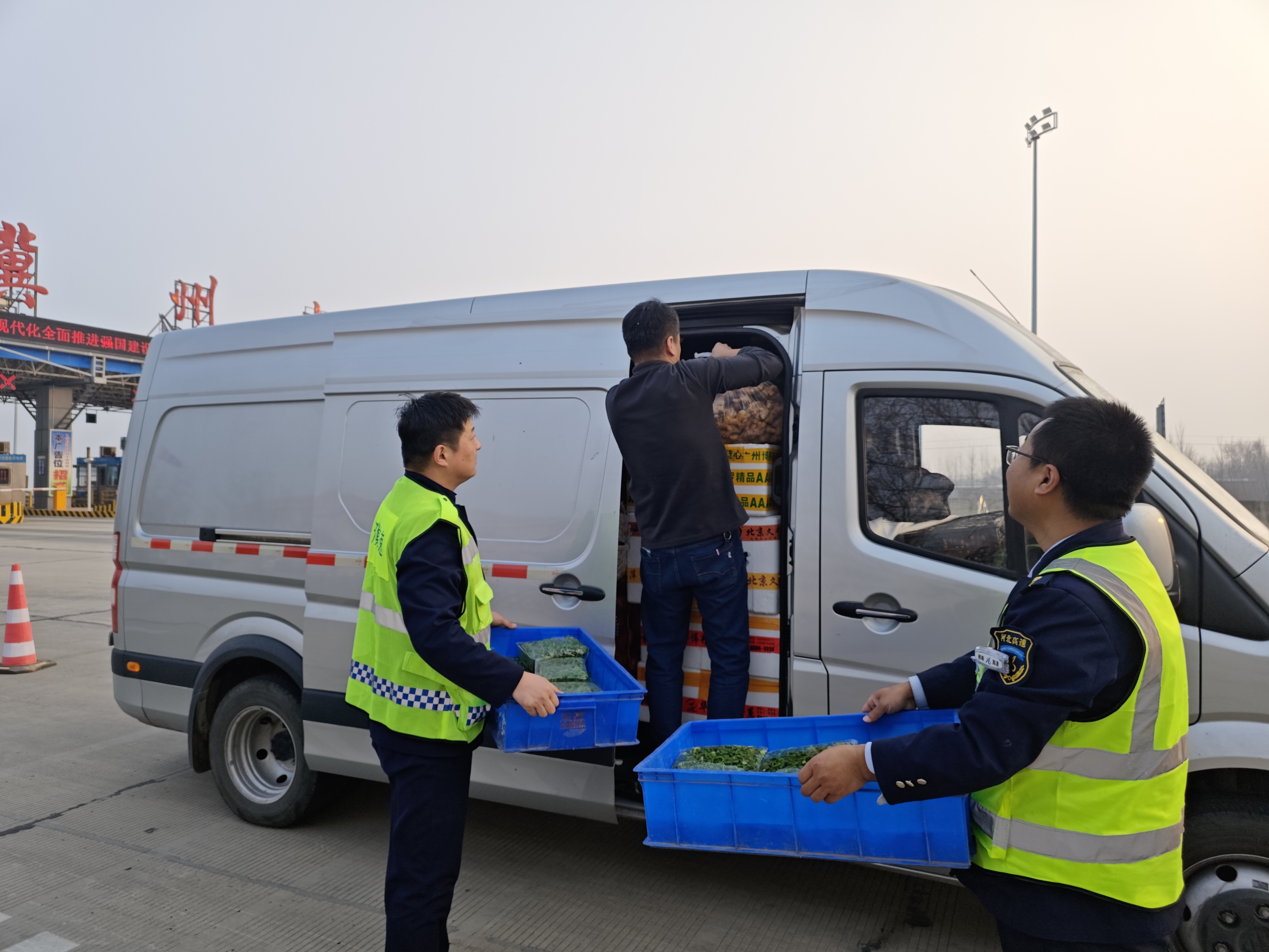 1月25日16时许,一辆厢式货车驶入冀州南收费站105车道,司机称所载为新鲜蔬菜,要求进行绿通查验。当班班长与验货员按流程操作时,车厢内货物突然滑动,导致侧门无法关闭。