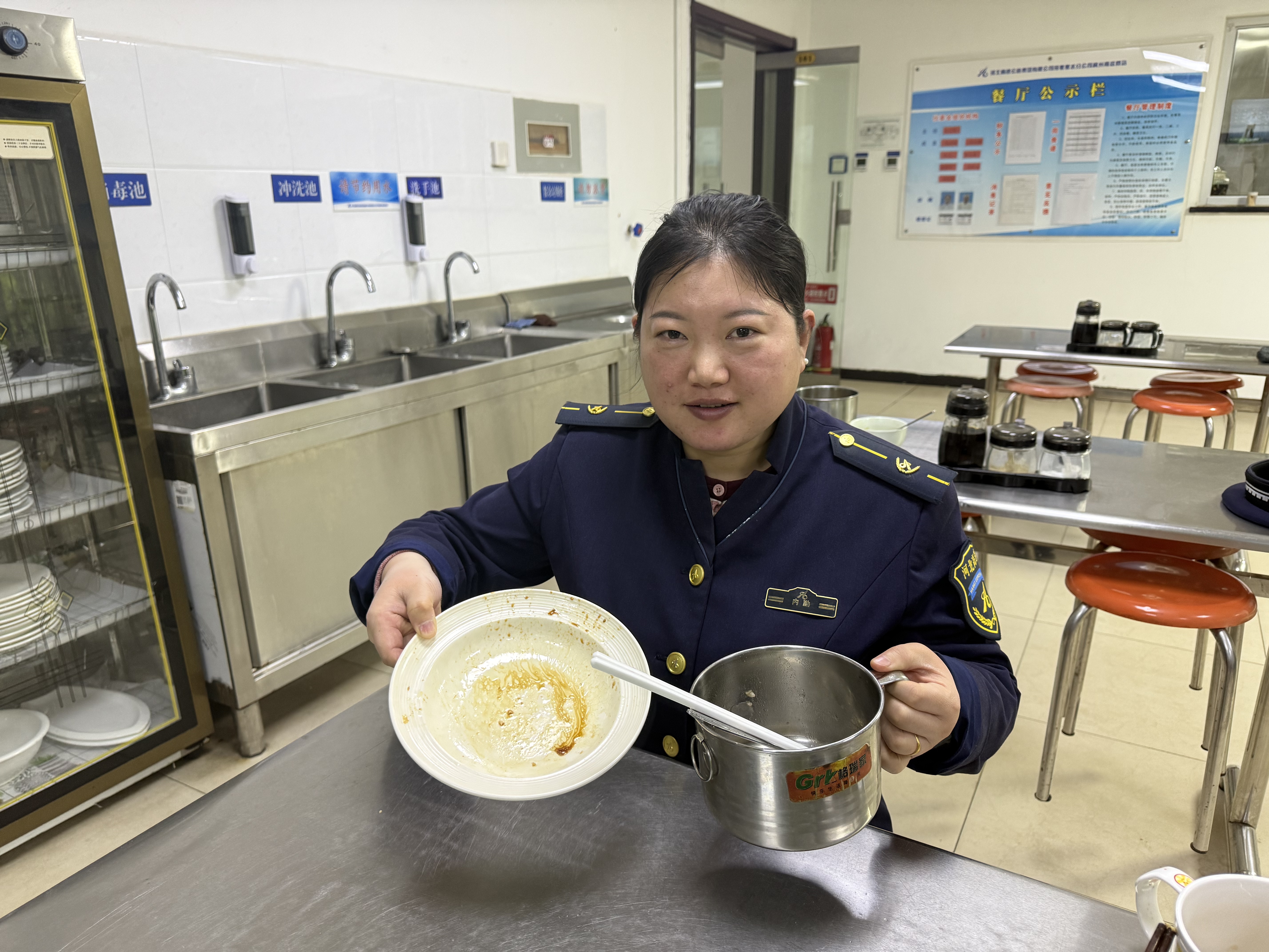 伙委会成员担任监督员,一方面对食材采购、储存和加工环节进行精细化管理,根据每日就餐人数精准备餐,从源头上减少浪费;另一方面在就餐时段现场引导,提醒大家按需取餐、勤拿少取,并对剩餐职工及时给予善意提醒。