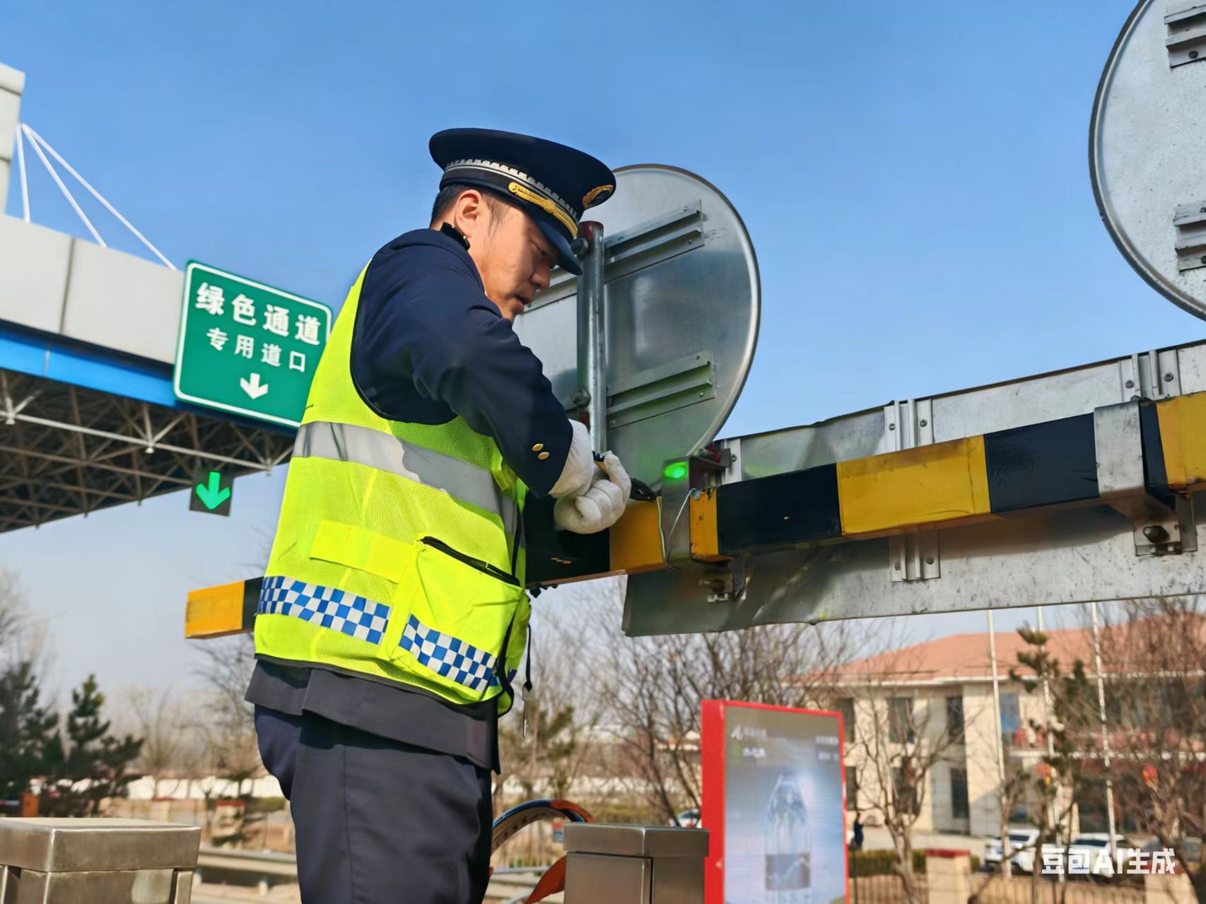 上午10点左右,一车辆在驶入免费专道时,不慎与车道上方的指示牌发生碰撞,导致免费专道指示牌固定装置损坏,牌面严重下垂。这不仅影响了专道的正常辨识,更对后续车辆的通行构成极大安全威胁,稍有疏忽就可能引发二次事故。当班收费员发现情况后,第一时间上报至站内值班领导。为保障现场车辆安全,冀州南收费站立即启动应急预案,一方面迅速开通临时免费专道,并加派人员疏导车辆;另一方面,迅速安排人员对指示牌进行紧急维修加固。经过近十分钟的紧张抢修,受损的指示牌被重新牢固安装,免费专道恢复正常通行。