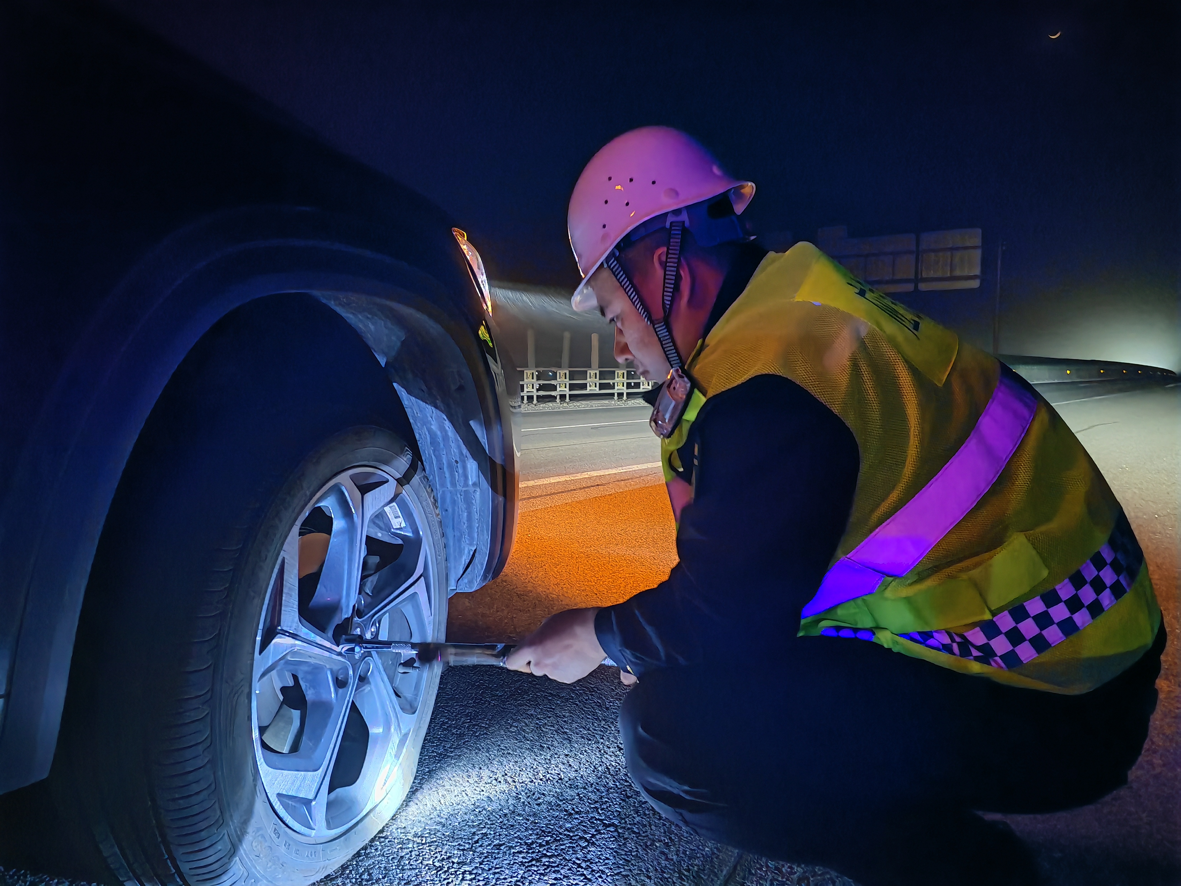 2月21日,庞家村驻外中队在夜间巡查途中,及时为受困司乘更换备胎,以专业高效的服务,温暖了春运返程路。