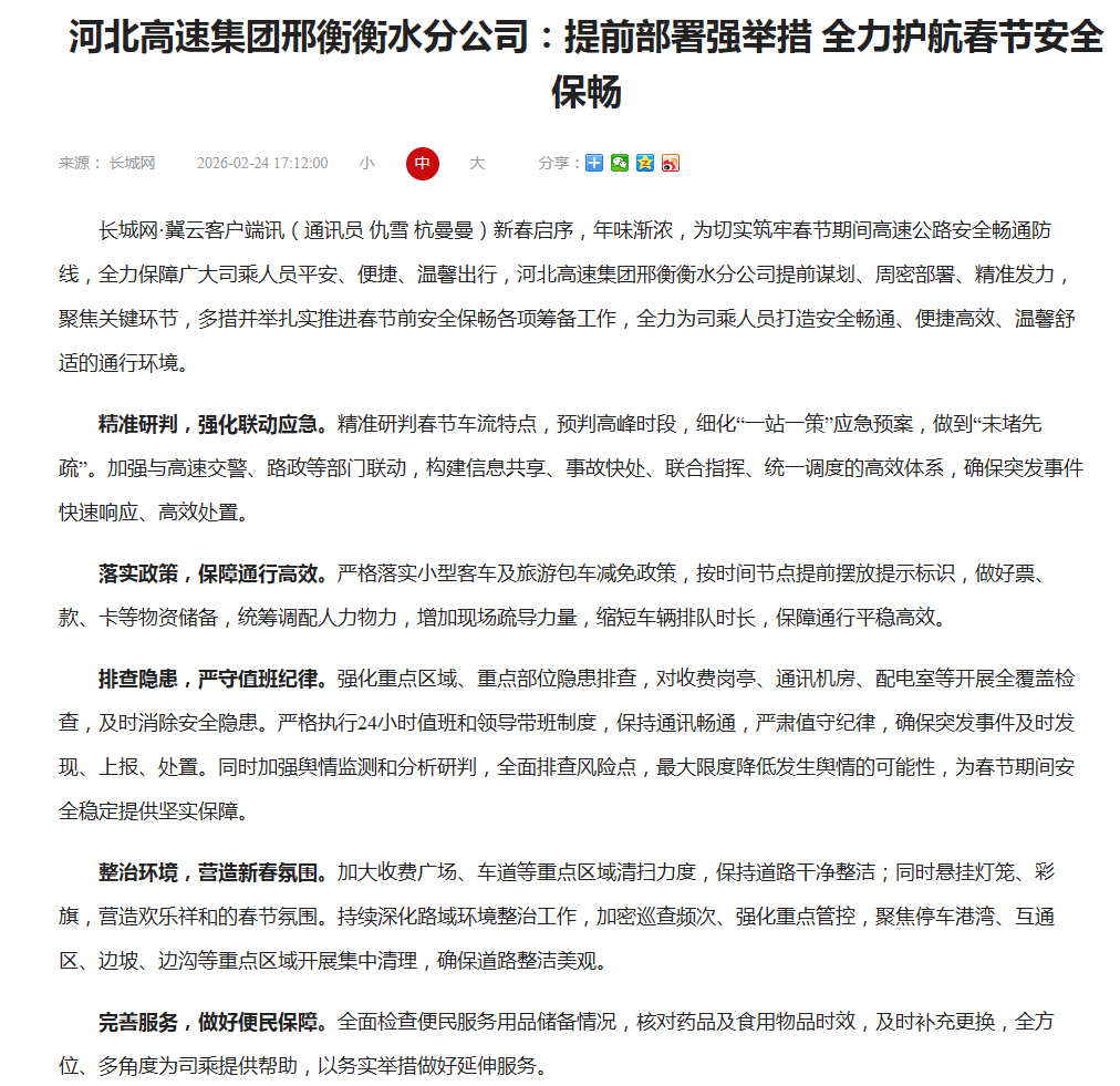 河北高速集团邢衡衡水分公司:提前部署强举措 全力护航春节安全保畅