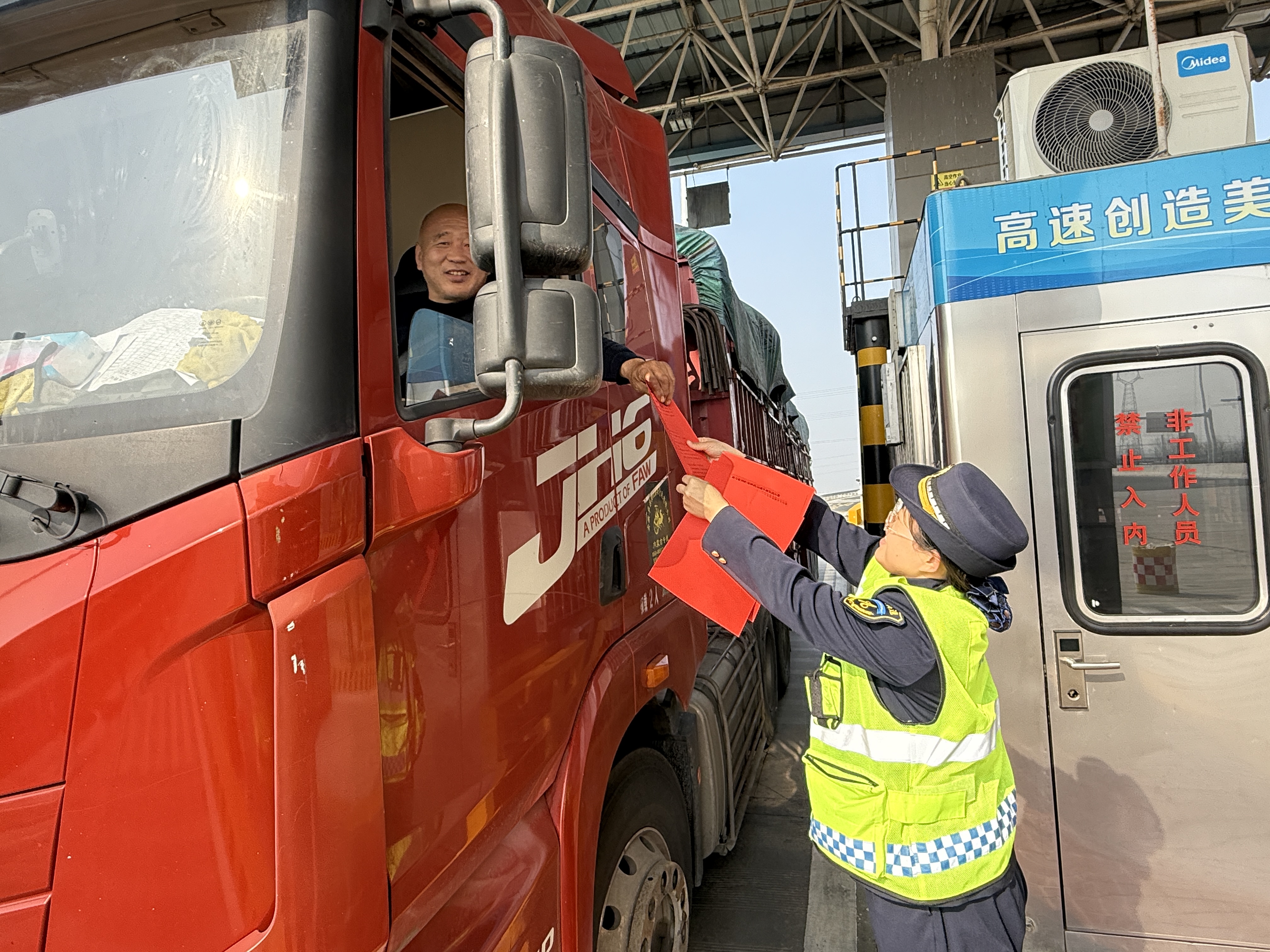 二是优化便民服务,暖心护航助农忙。在收费广场设立春耕便民服务站,配备热水、应急药品、修车工具、交通指南等物资,主动为农机手、农资运输司机提供路线咨询、政策解读、临时休息等贴心服务。一线职工化身助农服务员,耐心解答通行疑问,及时提供帮扶,用温情服务温暖春耕运输路。