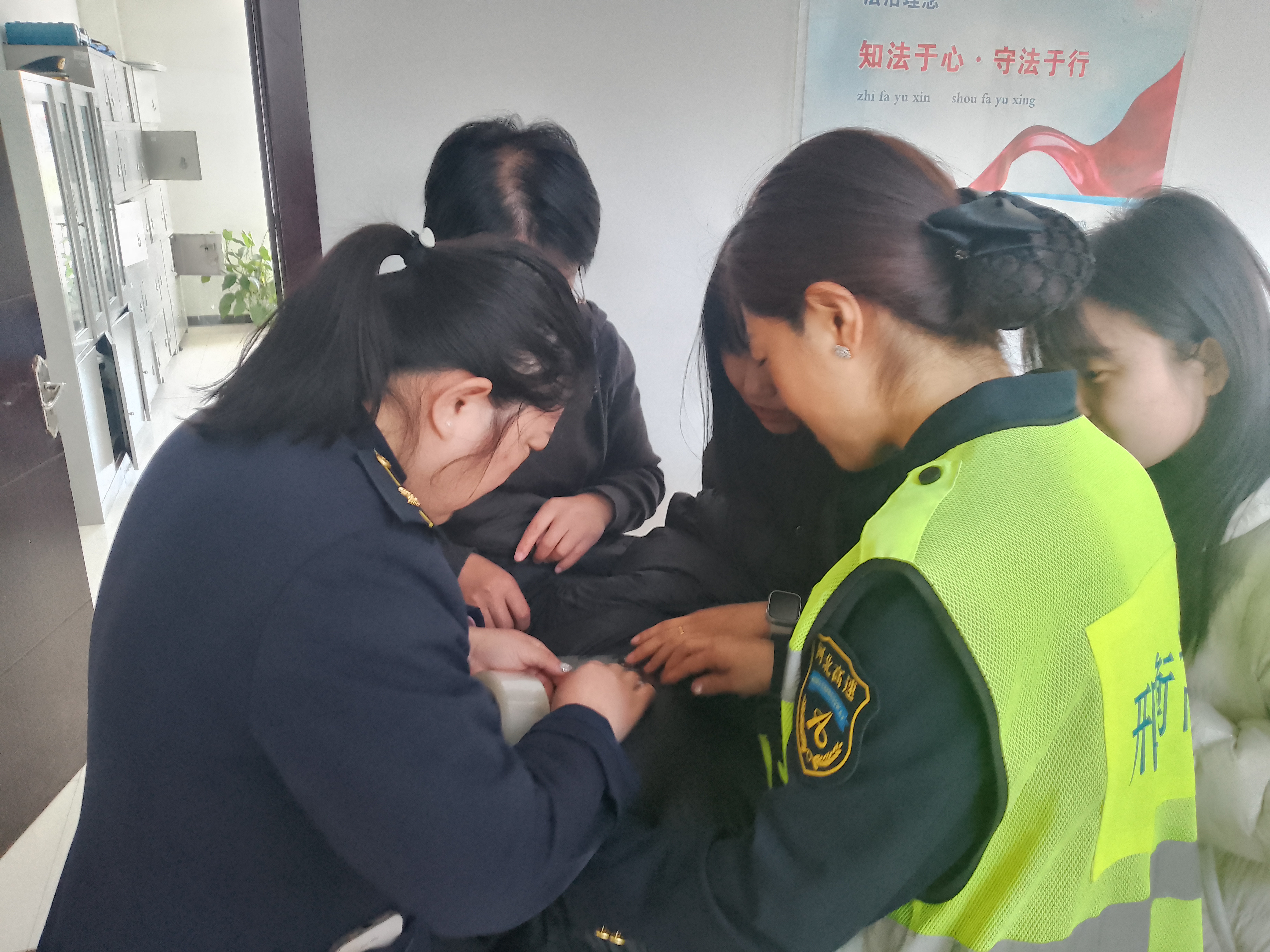 巡查中,一名女司机因衣物破损影响保暖,向收费站求助。工作人员立即取来透明胶带,细心为她修补破损处。司机连连道谢,称赞收费站服务周到、暖心实在。
