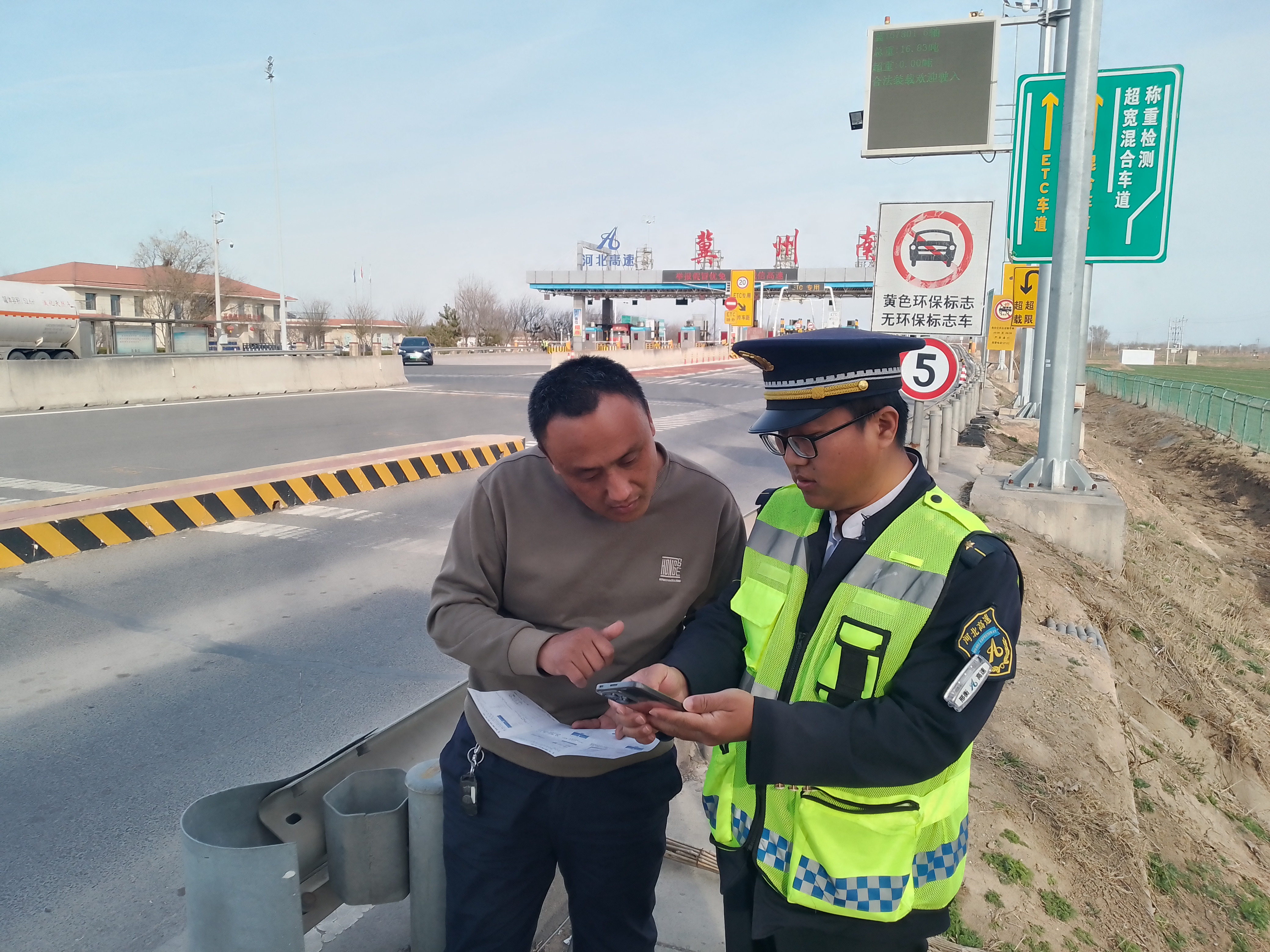 3月19日,一辆危化品运输车在冀州南收费站广场停下,货车司机面露难色,向收费员咨询前往故城的行驶路线。经了解,因司机第一次来河北送石油,加上衡德高速修路,已经跟着导航绕了两圈,对正确的绕行路线全然不知,十分焦急。