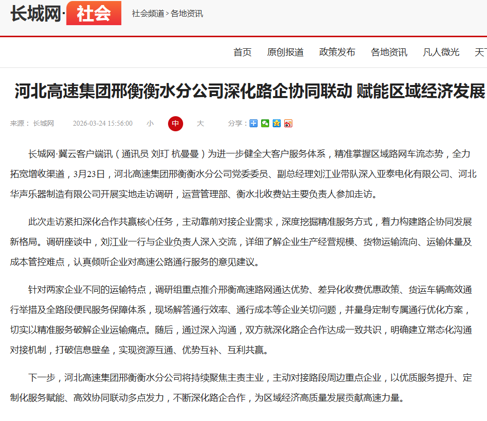 河北高速集团邢衡衡水分公司深化路企协同联动 赋能区域经济发展