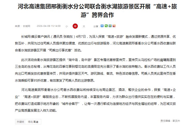 河北高速集团邢衡衡水分公司联合衡水湖旅游景区开展“高速+旅游”跨界合作