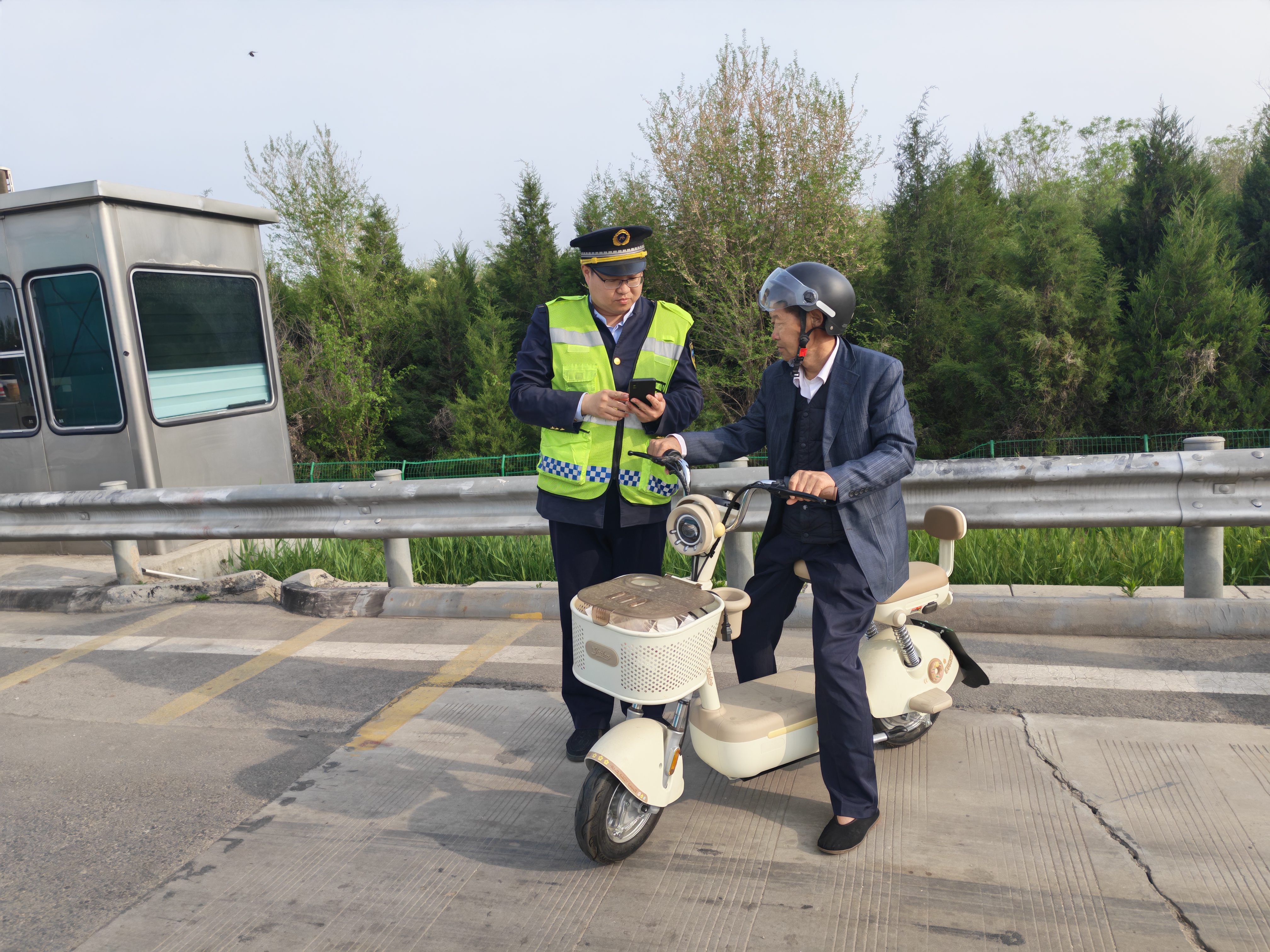 经细致沟通了解,老人本计划前往某县城,因不熟悉导航使用方法、错设行驶路线,误行至高速公路入口。工作人员现场向老人普及道路交通安全法规,明确告知电动车等非机动车严禁驶入高速,此类行为极易引发交通事故,危及自身和他人生命安全。随后,工作人员细致为老人指明前往目的地的正确路线,反复叮嘱其途中注意行车安全。老人再三表达感激后,安全踏上路途。