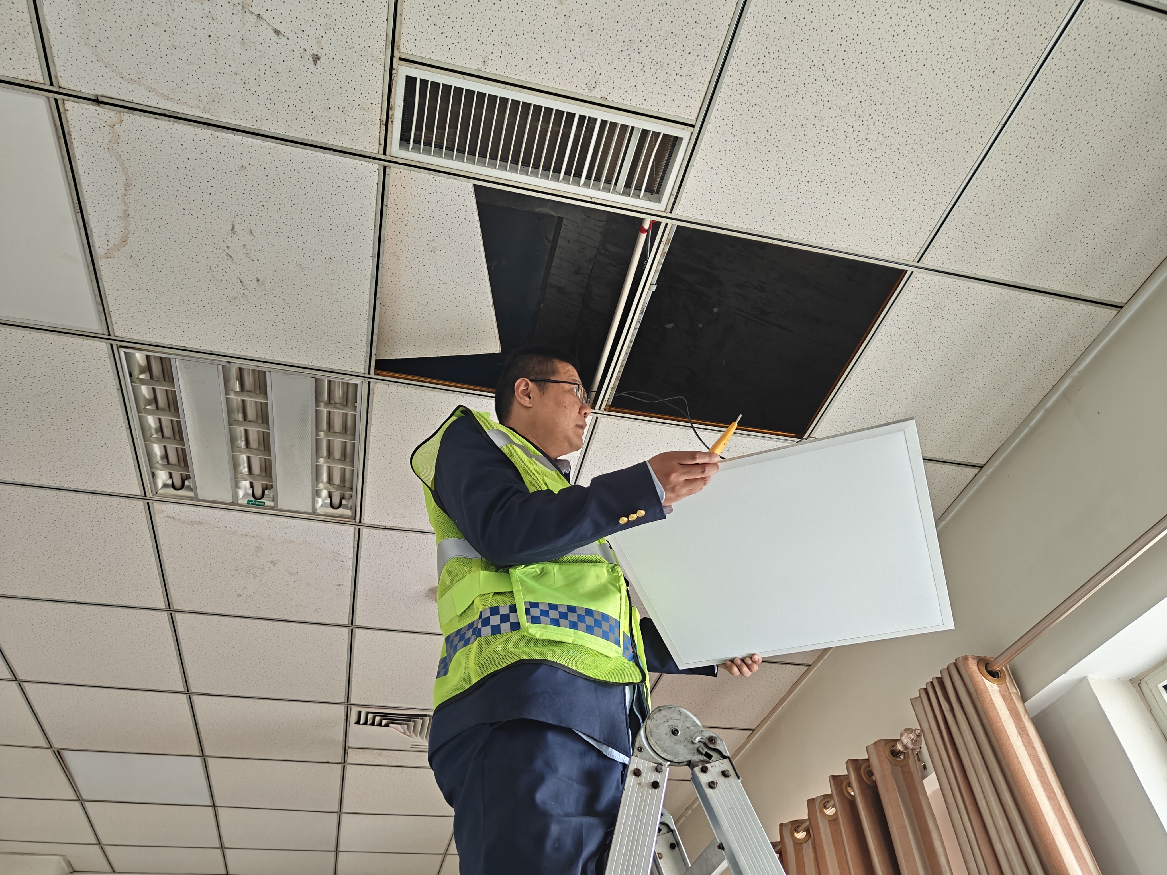 为切实贯彻集团公司“五自”经营理念,严格落实降本增效工作要求,站机电员立即携带梯子、钳子、电笔、绝缘胶带等工具赶赴现场。作业前严格执行断电操作,拆下吊顶灯具逐一排查故障点,经检测确定为灯具内部控制器损坏,无法继续使用。维修人员随即对损坏部件进行更换,顺利排除故障,照明恢复正常。