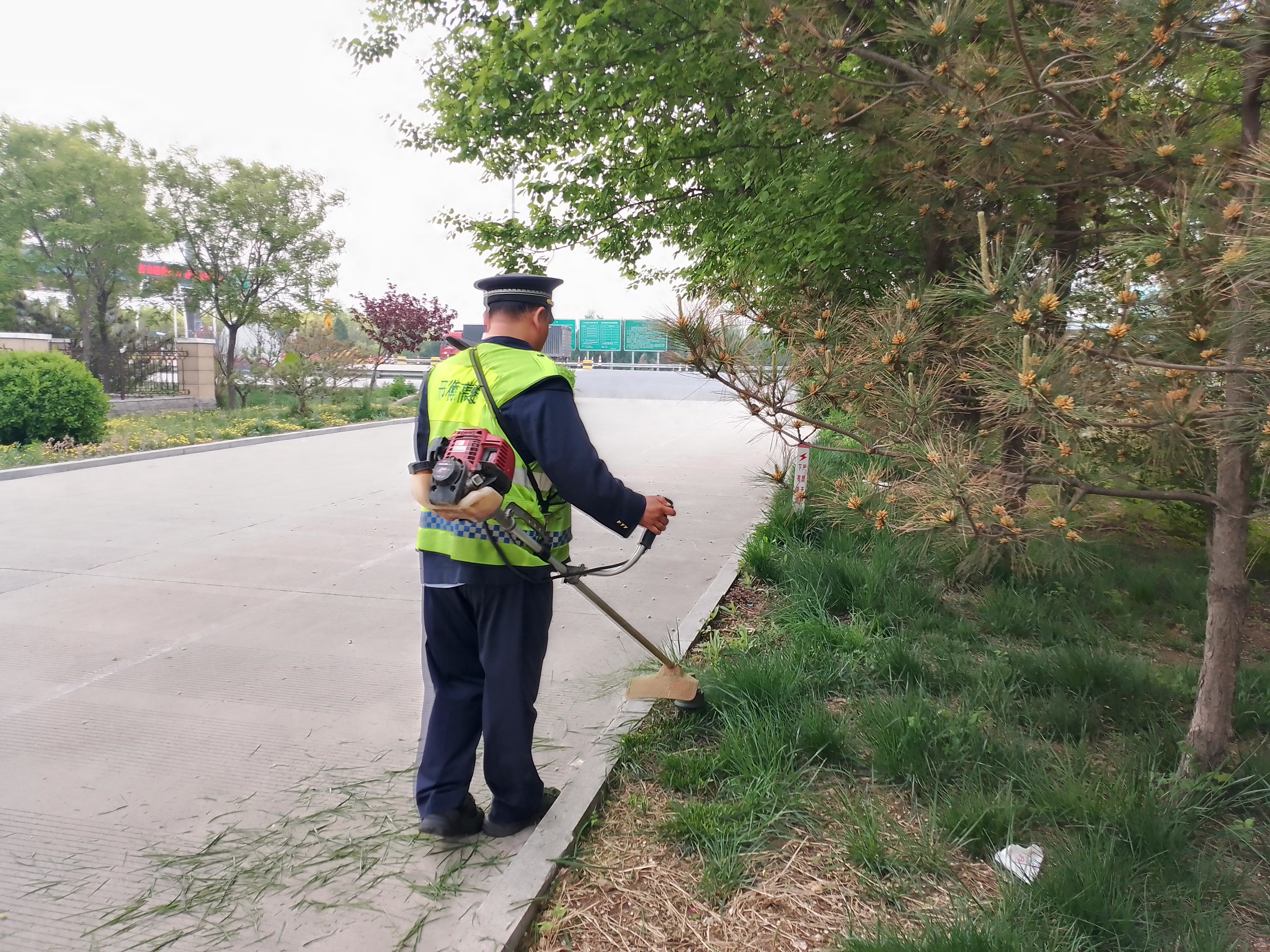 工作人员围绕收费广场周边、边坡两侧等关键区域,科学划分作业区域,全面开展杂草割除清理工作。行动中,大家分工协作、高效推进,利用打草机、除草剪对草坪杂草进行精细清理,并将杂草及时清运,确保边沟排水通畅、现场不留死角。整治后,站区周边环境焕然一新。