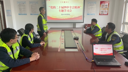 11月7日,邢衡衡水分公司组织召开了党委会会议,传达学习了习近平总书记在党的二十届四中全会上的重要讲话和会议精神,研究贯彻落实意见。[详细]