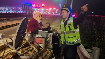 10月17日晚9时,冀州南收费站工作人员在巡查时,发现一位中年男子正骑着自行车,沿入口车道缓缓驶向高速公路入口,情况十分危险。工作人员立即上前挥手劝阻,引导其减速停车,并关切地提醒:“大哥,这里是高速公路...[详细]