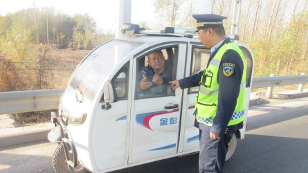 11月5日下午,冀州南收费站当班班长在执行入口治超值守任务时,注意到一位老人驾驶电动三轮车在收费广场徘徊,随后试图跟随前车驶入高速公路。发现这一险情后,班长立即小跑上前,示意老人停车,并及时进行了劝阻。 ...[详细]