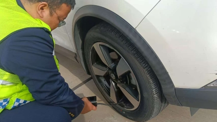 拿来收费站常备的便携式充气泵,同时引导范师傅开车到甬道等待。在范师傅的配合下,收费员一边对照车辆说明书确认标准胎压值,一边熟练操作充气泵为轮胎补气。充气过程中,收费员还不忘提醒王师傅:"您后续行驶时可...[详细]