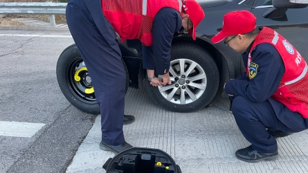 1月1日,衡水西收费站工作人员安全巡检时,发现一辆轿车长时间停在站区出口广场处,于是主动上前询问原因。 经询问得知,该车左前方轮胎压到了一颗钉子,导致胎压不足,无法继续行驶。收费站工作人员了解到司机车辆...[详细]