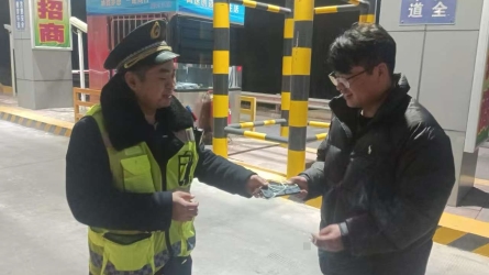 12月23日23时,一辆小汽车驶入冀州南收费站105车道。司机将车停好后,突然发现CPC通行卡不慎遗失,一时间焦急不已。收费员见状立刻上前安抚,并随即通知班长前来帮助寻找。 司机在车内翻找许久仍未找到通行卡,连声...[详细]